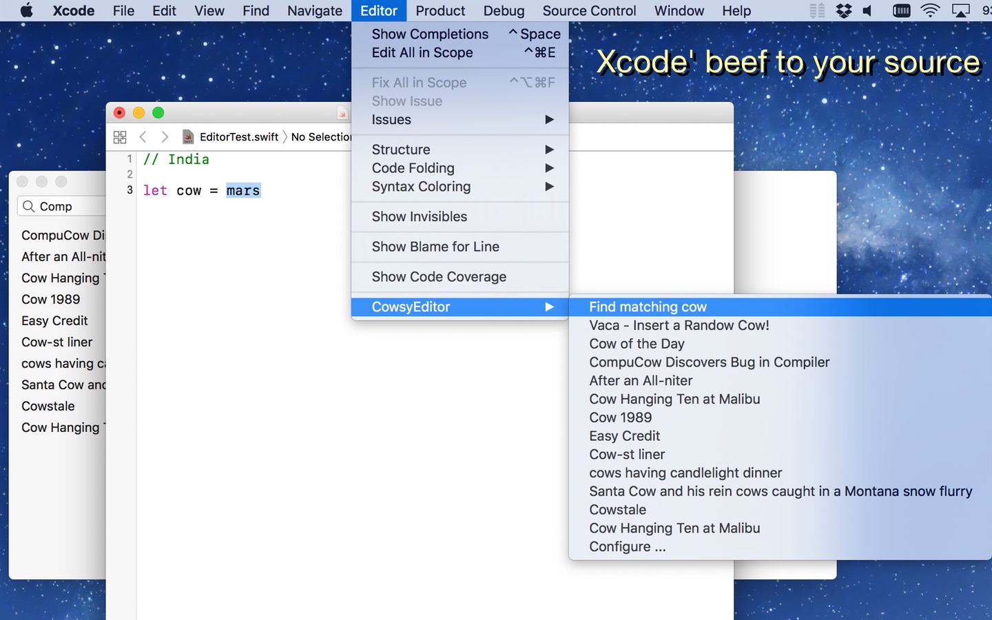 CodeCows is the last Xcode extension you'll ever need. So much beef. So little time.